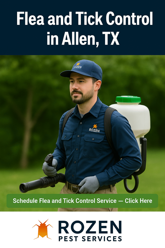 Fleas and ticks can be a constant problem for homeowners in Allen, TX. Rozen Pest Services offers professional flea and tick control solutions that eliminate these pests at all life stages—protecting your pets, family, and home from itchy bites and dangerous diseases.