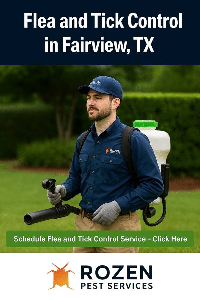 Fleas and ticks are a constant threat to pets and families in Fairview, TX. Rozen Pest Services provides professional flea and tick control that targets these pests at all life stages—ensuring your home and yard stay safe and comfortable.