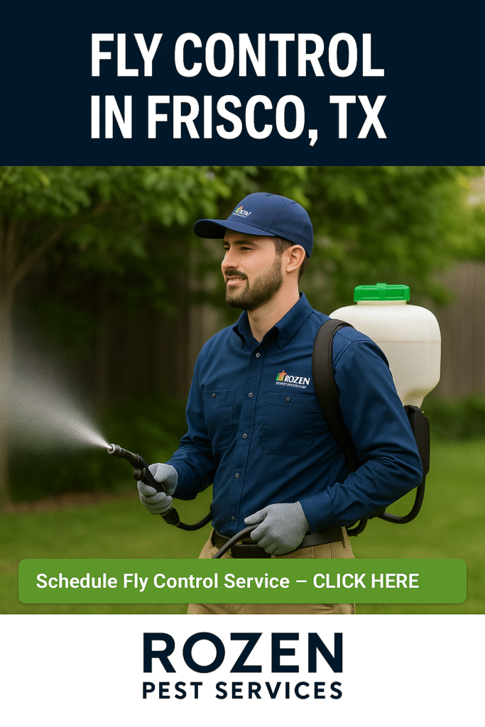 Flies can quickly become a nuisance in Frisco, TX, spreading bacteria and contaminating surfaces. Rozen Pest Services provides fast, effective fly control solutions that eliminate existing flies and prevent them from returning. Our treatments are safe for families, pets, and the environment.