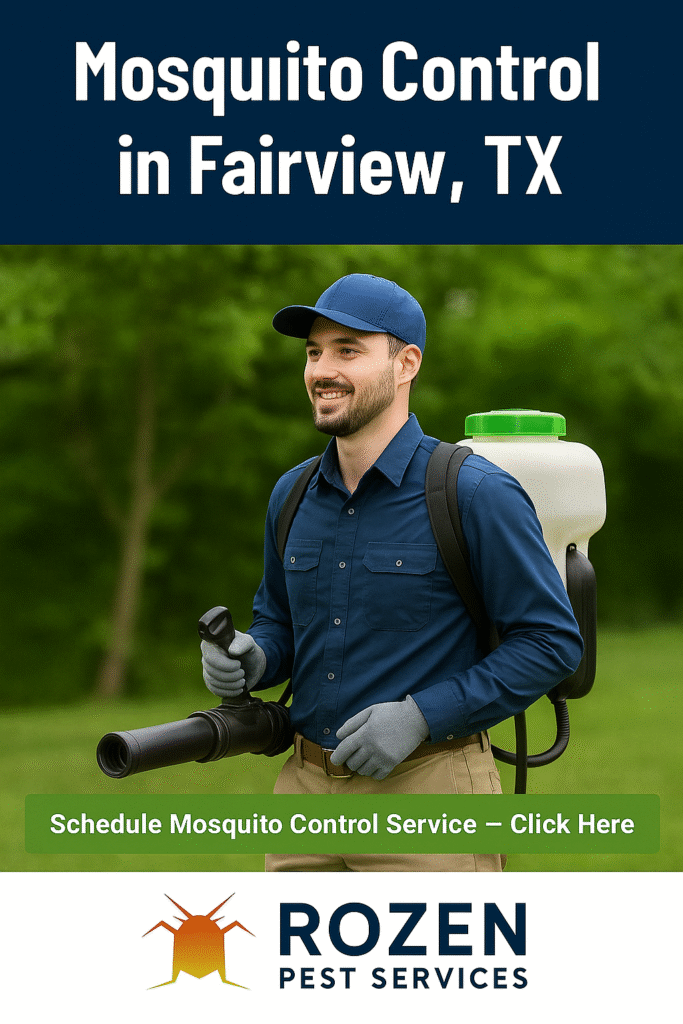 In Fairview, TX, mosquitoes are more than a backyard nuisance—they’re a health concern. Rozen Pest Services provides targeted mosquito control services that eliminate active mosquitoes and prevent new ones from emerging.